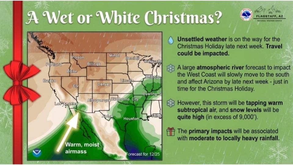 A large atmospheric river is forecast to impact the West Coast this week and then move into Northern Arizona just in time for Christmas.